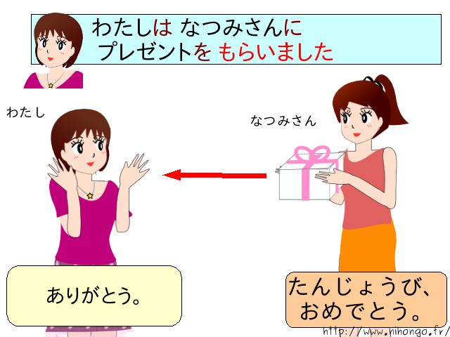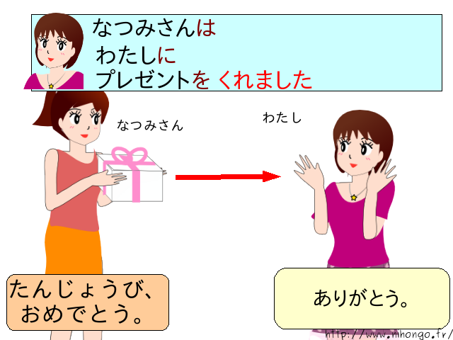 わたしは 夏美さんに 勉強を 教えてもらいました。