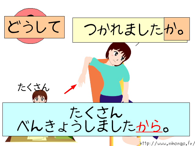 B:たくさん勉強しましたから(疲れました)。